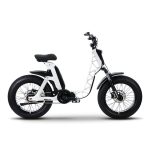 The aluminum trellis frame ensures lightness and strength, while the 20” wheels with wide tires provide stable handling on any urban surface. Hydraulic disc brakes and integrated LED lights offer safety and visibility in all conditions.